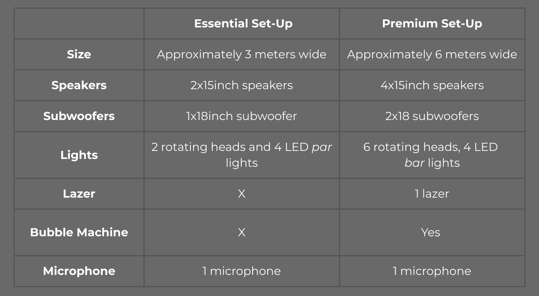 Our quality sound system is capable of reaching the maximum allowable legal noise limit.